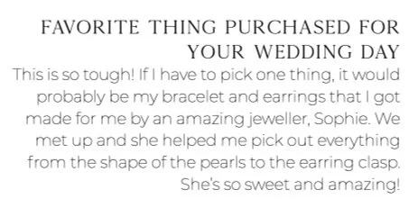 A heartfelt note about a wedding gift, mentioning a bracelet and earrings made by a jewelry designer named Sophie.