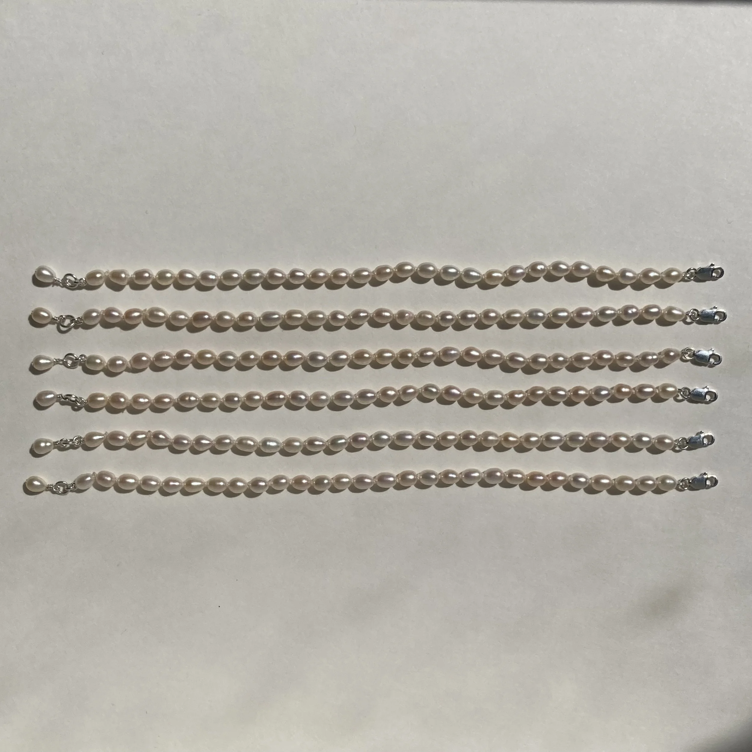 Seven matching white freshwater pearl bracelets, custom ordered bridesmaids gift.